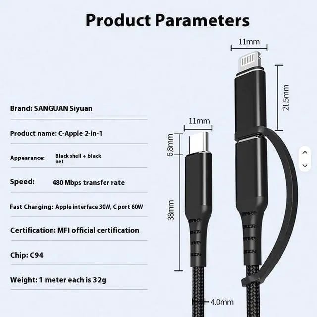 Streamline your charging experience with the Triple Crown Siyuan Two-in-One MFi Data Cable. This versatile cable integrates two essential charging interfacesLightning for Apple devices and Micro USB/Type-C for tablets and other mobile devicesinto one compact, certified design. Certified with MFi (Made for iPhone/iPad), it guarantees safe, reliable, and efficient charging and data transfer for your iPhone 16, tablet, and other compatible devices, eliminating the need for multiple cables.