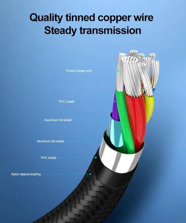 - Advanced Safety Features: Constructed with premium tinned copper conductors for efficient power flow and minimal resistance. The Braid+Foil double shielding protects against electromagnetic interference, ensuring stable charging and clear data transmission. The aluminum alloy connectors enhance heat dissipation and connection stability.