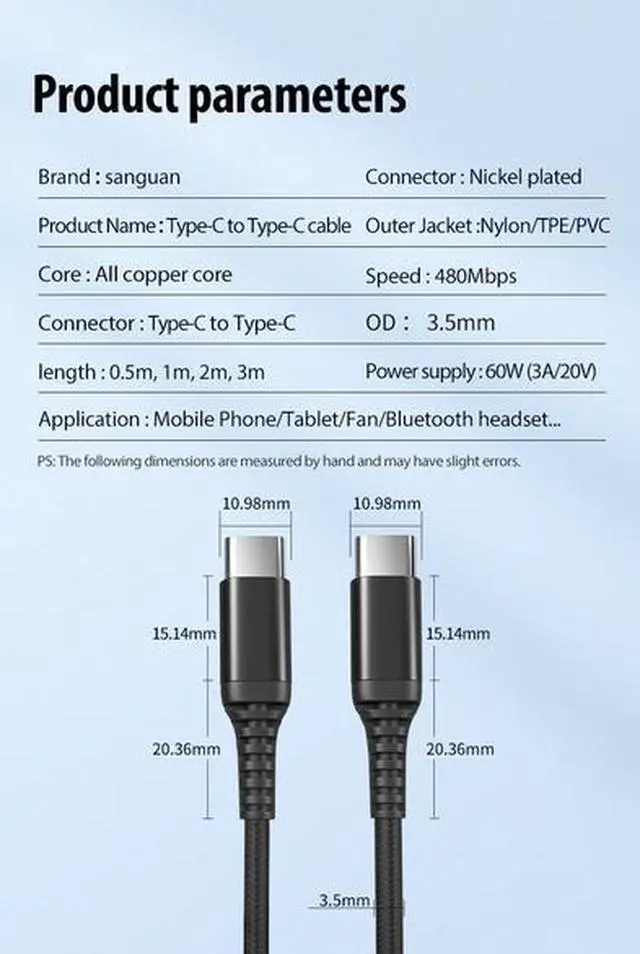 Meet the SANGUAN USB Type-C to Type-C Cable your high-performance solution for fast charging and reliable data transfer. Combining robust construction with universal compatibility, this cable is engineered to power and connect your modern devices efficiently.