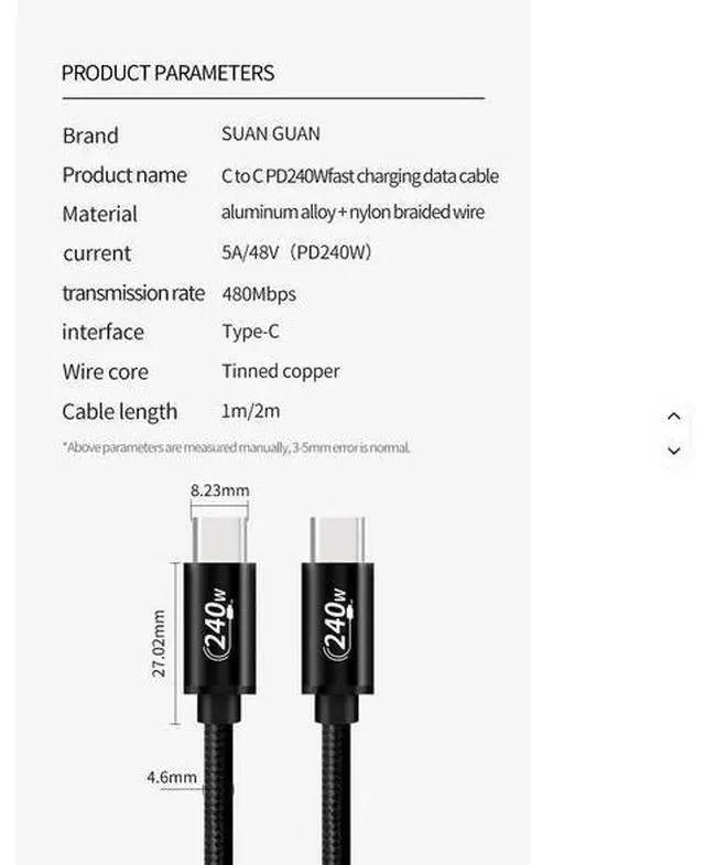 Experience unparalleled power and performance with this USB-C to USB-C Cable. Engineered for 240W ultra-fast charging, 480Mbps data transfer, and superior durability, this cable is designed to meet the demands of high-power laptops, smartphones, tablets, and professional workstations.