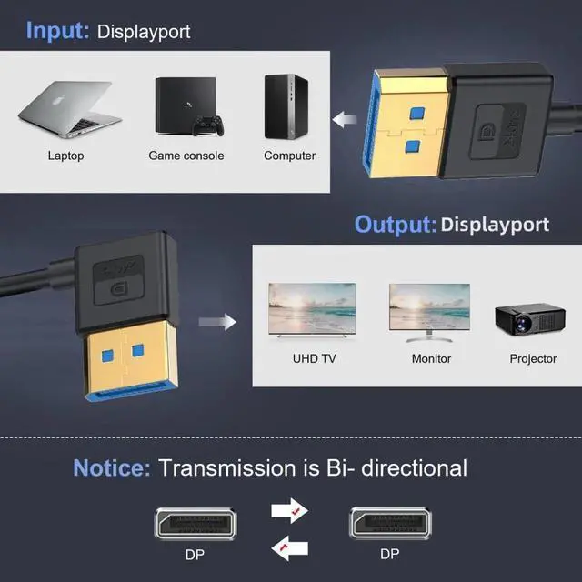 High-Definition Video: Industry standard bandwidth allows for unrestricted video in 8K, 4K 1440p and 1080p. Enjoy unparalleled video quality, crisp and accurate sound, and buffer-free ethernet connection with these DP cables.