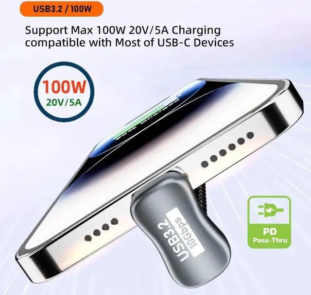 This USB-C Cable can Reach Data Transfer Rate up to 10Gbps, Support Max 100W 20V/5A Charging, It will supply power when your USB-C device is in use.