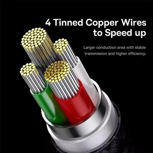 Built with 4 high-purity tinned copper wires, providing a larger conduction area for stable transmission, reduced resistance, and higher charging efficiency.