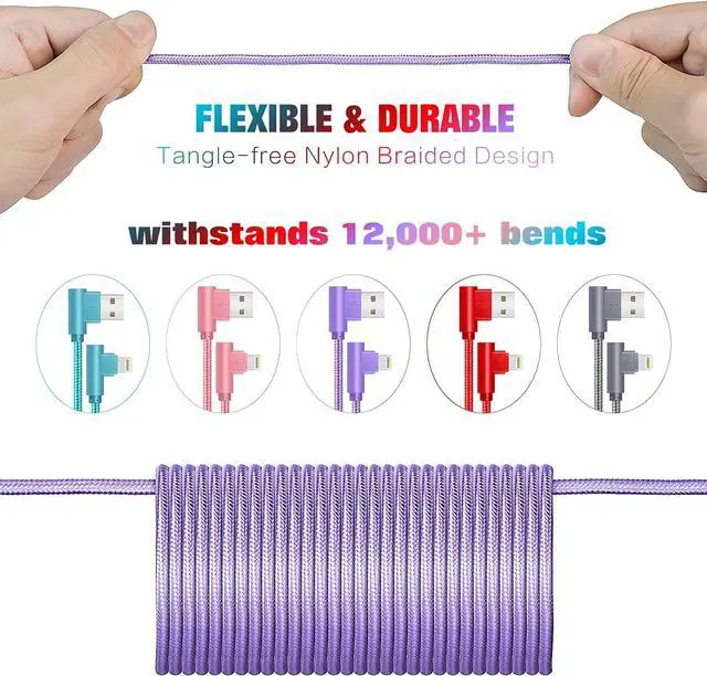 [Best material]: Tangle-free Nylon Braided Lightning Cable with solid 90 degree connector has a long bend lifespan, Stronger and flexible Nylon material is stress and stretch resistant