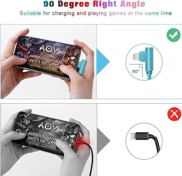 Design]: Unique Right Angle Design and 90 Degree L type design makes it more convenient when you playing the game and charging at the same time. You can lie on the couch and use your devices while charging them at the same time, use freely in your bedroom, office and even in the backseat of your car.
