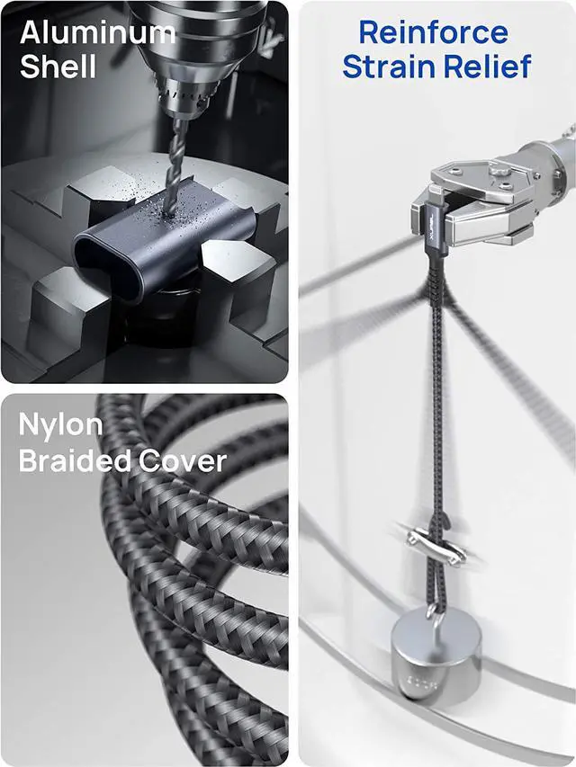 5X Flexible & Sturdy: Nylon braided cable with reinforced SR design not only stay tangle-free but also can withstand 15, 000+ bending test. Aluminum alloy casing ensures a longer lifespan.