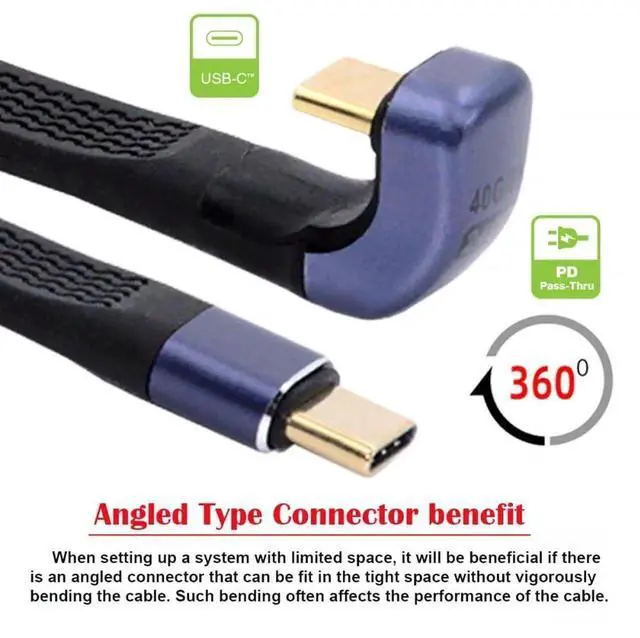 240W Type-C USB-C Male to Male USB4 40Gbps 100W 8K Flat Slim FPC Data Opposite U Shape Back Angled Cable for Laptop Phone 13cm