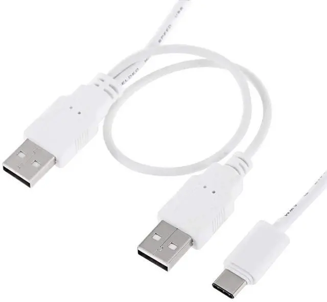 Work for Laptop & Hard Disk Two USB male connector, One is for USB3.0 power and data, another one for USB2.0 power only. Allows for power to be taken from 2 USB ports, like a PC and External hard drive. Allows you to link 1 USB-C device into 2 USB Ports on your PC for more power. There are times you may have an external device, such as a portable 2.5 hard drive, and a standard USB cable is not able to transfer enough power to operate the device. Type-C USB-C to USB 3.0 Male & USB 2.0 Dual Power Data Y Cable 60cm