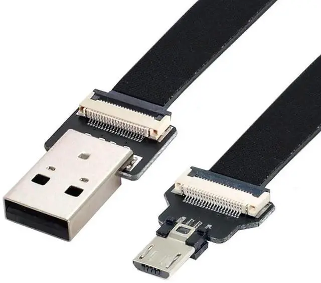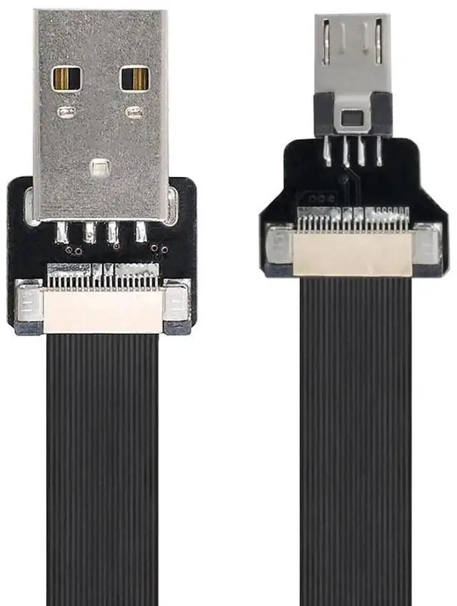 USB 2.0 Type-A Male to Micro USB 5Pin Male Data Flat Slim FPC Cable for FPV & Disk & Phone