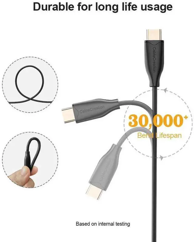 [Soft and Flexible PVC Shell] usb-c to c cable is covered with a PVC molded shell, which is softer and more flexible than most USB C cables in the market. Also, this USB C to C cable can withstand more than 30,000 bend tests and is more durable and has a long lifespan