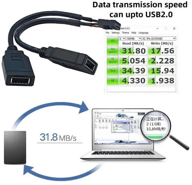 4) The compact adapter can be inserted directly and requires no additional attachments.Converter plug-in for the mainboard, Fits into any USB 2.0 header.