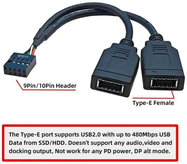 2) The Type-E port supports USB2.0 with up to 480Mbps USB Data from SSD/HDD.