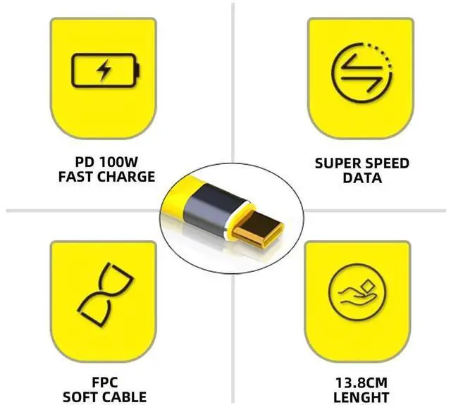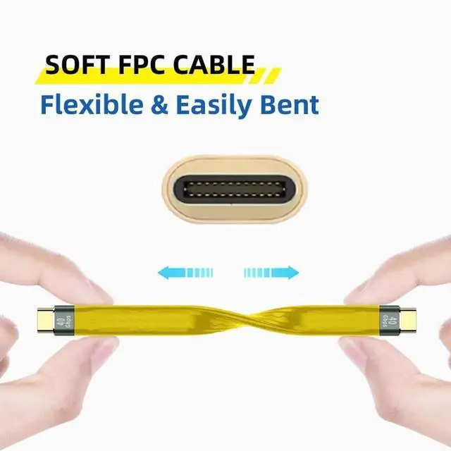 Type-C USB-C Male to Male USB4 40Gbps 100W 8K Flat Slim FPC Data Cable for Laptop Phone 13cm