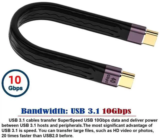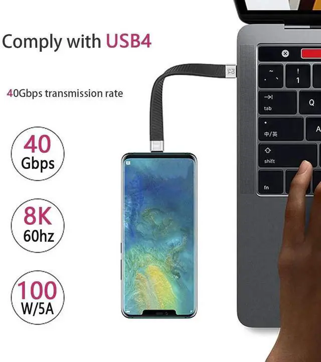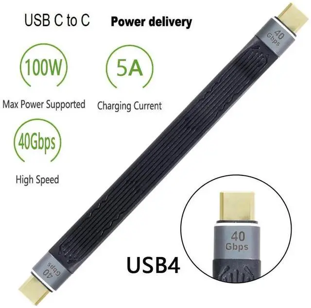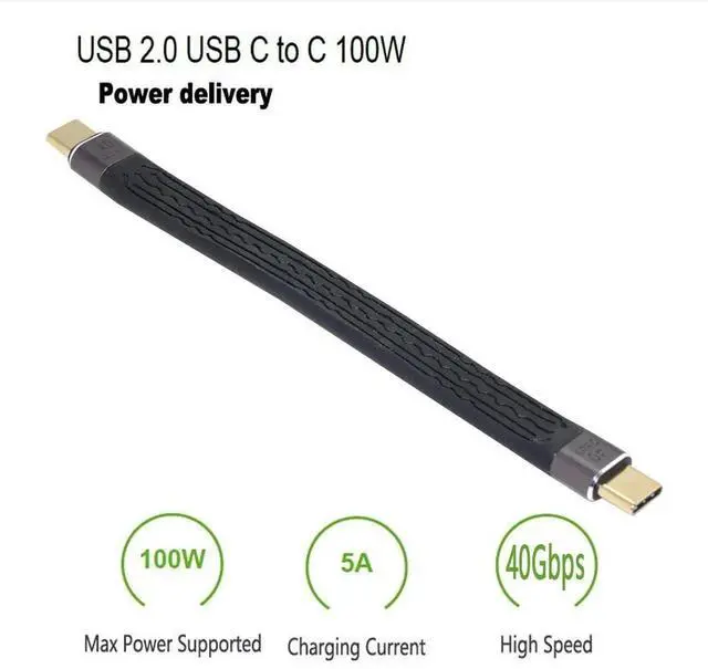 Type-C USB-C Male to Male USB4 40Gbps 100W 8K Flat Slim FPC Data Cable for Laptop Phone 13cm