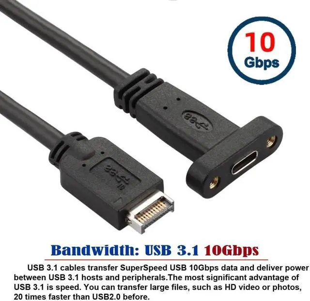 USB 3.1 Front Panel Header to USB-C Type-C Female Extension Cable 40cm with Panel Mount Screw USB 3.1 require a different front panel header than USB 3.0. The USB 3.1 port interface is using the USB 3.0 pin set and more. It is design to be backwards compatible (will explain later). There are no official release of the specs for the USB 3.1 header yet (as of this writing), But first motherboard with this is the ASUS ROG MAXIMUS IX FORMULA,STRIX Z270I/Z270G etc. Length: 40cm Connector1: Type-C Female with Panel Connector2: USB 3.1 Front Panel Header