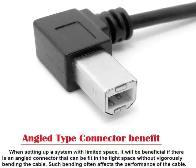 Used to connect USB Type B cables in tight fit applications. Can work for Printer Scanner Hard Disk extension.