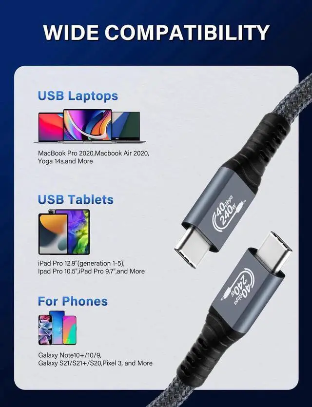 ![Alt view image 7 of 7 - JAENFONG [Upgraded] USB4 Cable Compatible with Thunderbolt 4/3 Cable 1M / 3.3 ft, Supports 240W Charging / 8K Display / 40Gbps Data Transfer USB C to USB C USB 4 Cable, for Type-C Latops, Hub, Docking](https://c1.neweggimages.com/productimage/nb640/C1DRS2508200K2L9098.jpg)