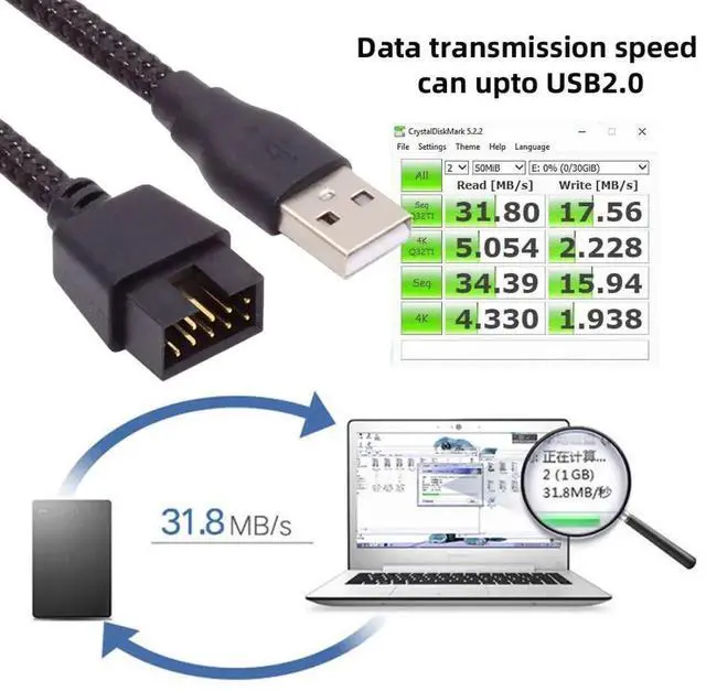 The 9/10Pin header can be connected to a 9/10Pin adapter cable to connect mobile phones, laptops, tablets and any peripheral devices, supporting power and data transmission.