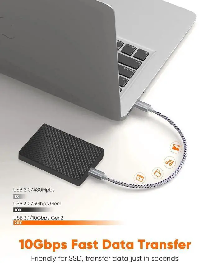 • USB 3.2 10Gbps Data Transfer: CableCreation Gen2 USB 3.2 Type-C to Type-C Cable fully complies with USB 3.1 Gen 2 standard and provides super speed syncing at max 10 Gbps, connecting USB-C hard drives or SSD to transfer big files, HD movies, or songs in seconds. (Note: This cable does not support data transfer or charging between two laptops)