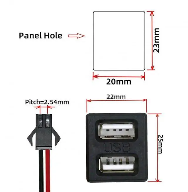 DIY OEM Dual Type-A Female Socket to 2Pin Header Cable Pitch=2.54mm Latch Mount Type DC 5V Power