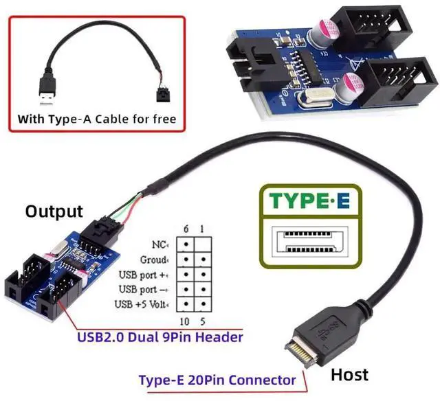 5) It can extend your type-E connector to 4pin connector.You can convert the 20pin Type-E motherboard internal port to usb 2.04pin device. Used to connect USB cables or adapter in tight fit applications.