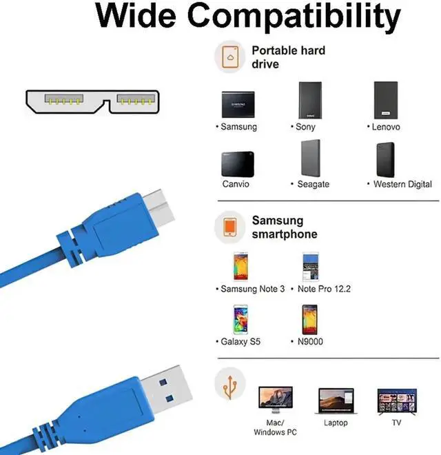 ![Alt view image 5 of 6 - JAENFONG Micro USB 3.0 Cable, USB 3.0 Type A Male to Micro B Cord [2 Pack, 0.65ft], Short External Hard Drive Cable Compatible with Samsung Galaxy S5 N900 Note Pro WD Lacie Hitachi Seagate Camera-Bule](https://c1.neweggimages.com/productimage/nb640/C1DRS25082107OXFM67.jpg)