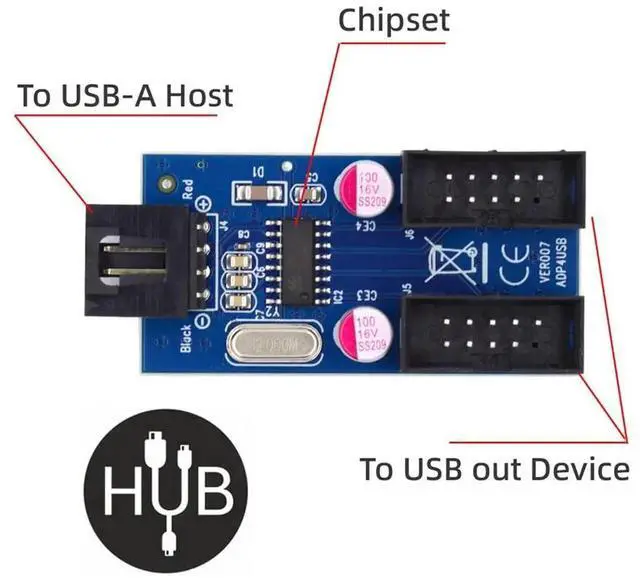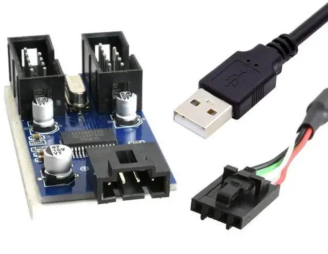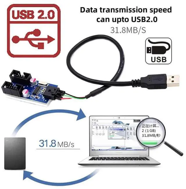 USB 2.0 Type-A Male 1 to 2 Female Motherboard 9pin Header Extension HUB Connector Adapter Port Multilier