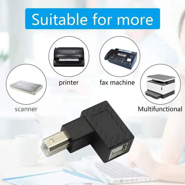 • USB to printer adaptor with Left and right Angle the printer extension adapter that connect to USB 2.0 peripherals in narrow spaces to solve your printing problem.