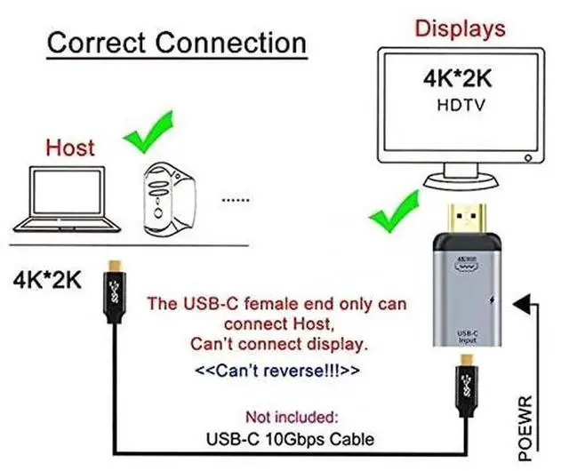 USB-C Type C Female Source to HDMI Sink HDTV & PD Power Adapter 4K 60hz 1080p for Tablet & Phone & Laptop