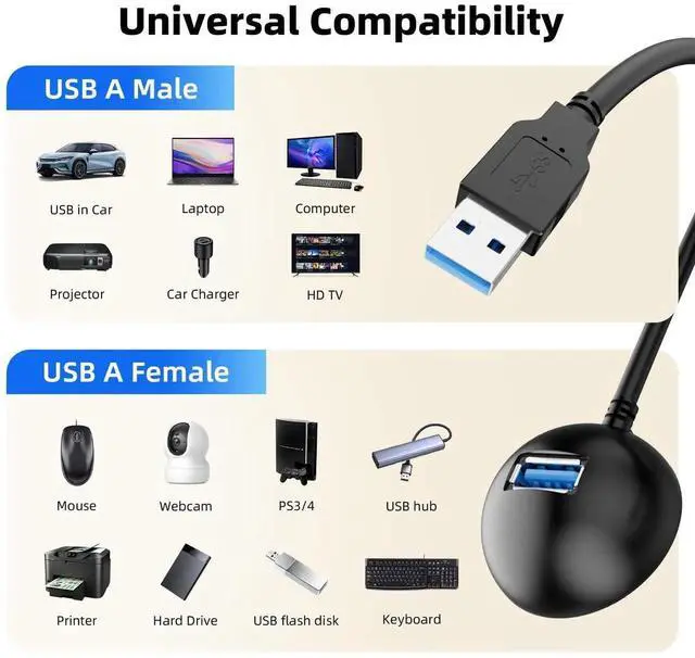 Extend your computers USB port to a more accessible location with Vszerda desktop USB extension cable. Perfect for connecting flash drives, peripherals, and other USB devices without reaching behind your PC