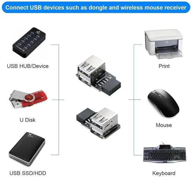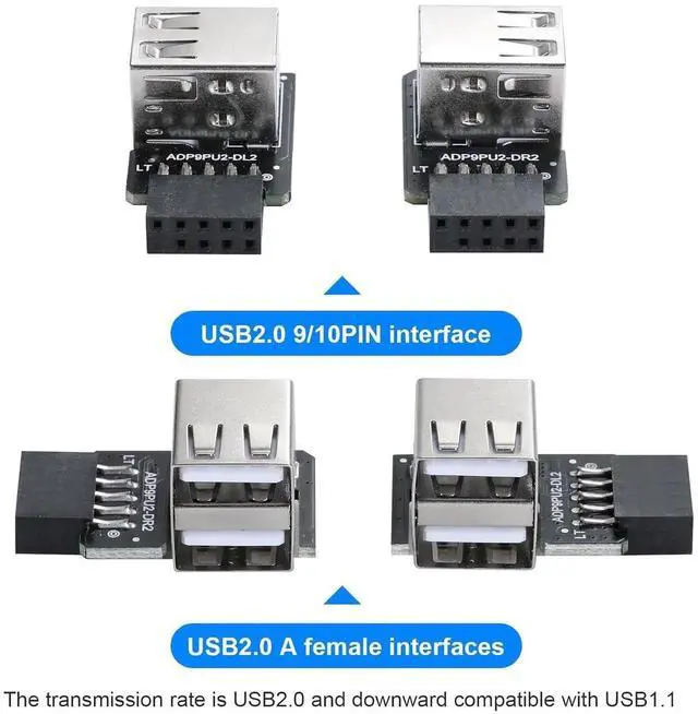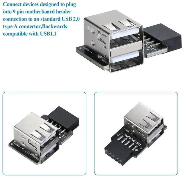 Right type 2-port USB 2.0 to 9-pin*1