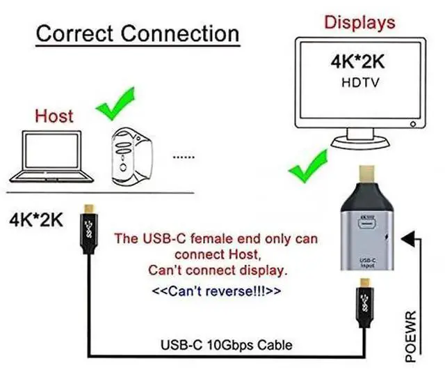 USB-C Type C Female Source to Mini Displayport Sink HDTV & PD Power Adapter 4K 60hz 1080p for Tablet & Phone & Laptop