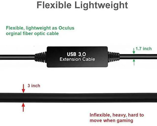 *****FLEXIBLE & LIGHTWIGHT - The ergonomic design reaches 16 feet, providing a best-in-class experience with flexible, lightweight durability as original Oculus fiber optic cable.*****