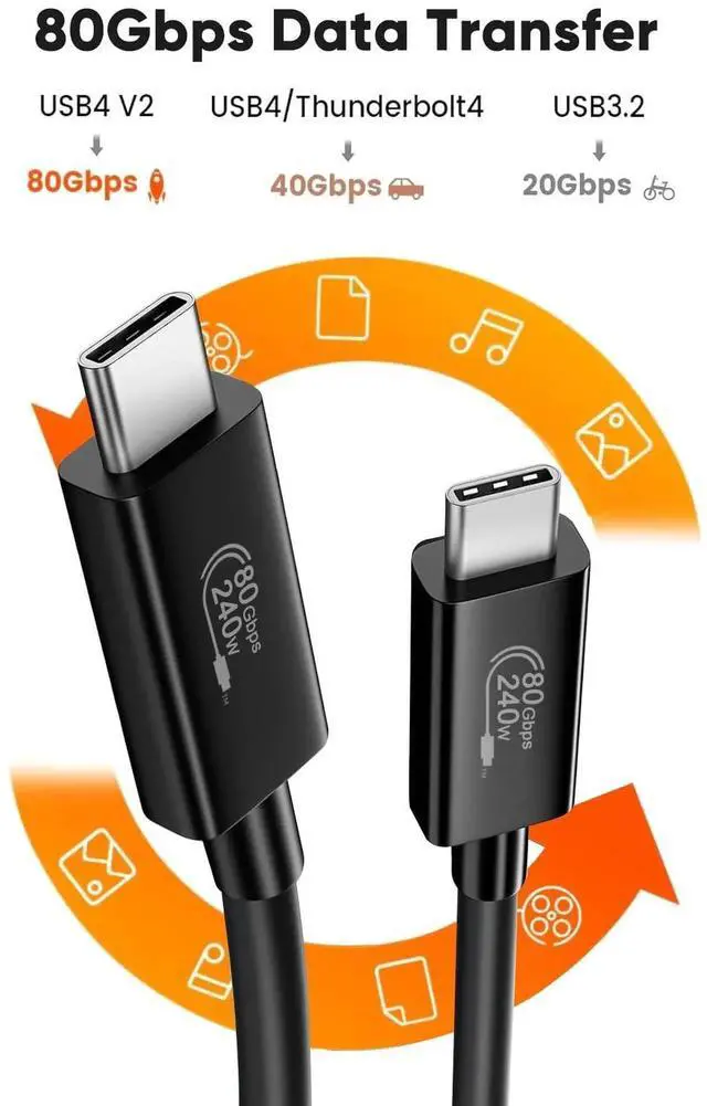 80Gbps USB 4 Cable 3.3FT, 120Gbps Bandwidth, 8K 60Hz Display, 240W Charging, Compatible with Thunderbolt 5,Thunderbolt 4/3, USB4, SSD, MacBook M4 Pro, Dock, eGPU
