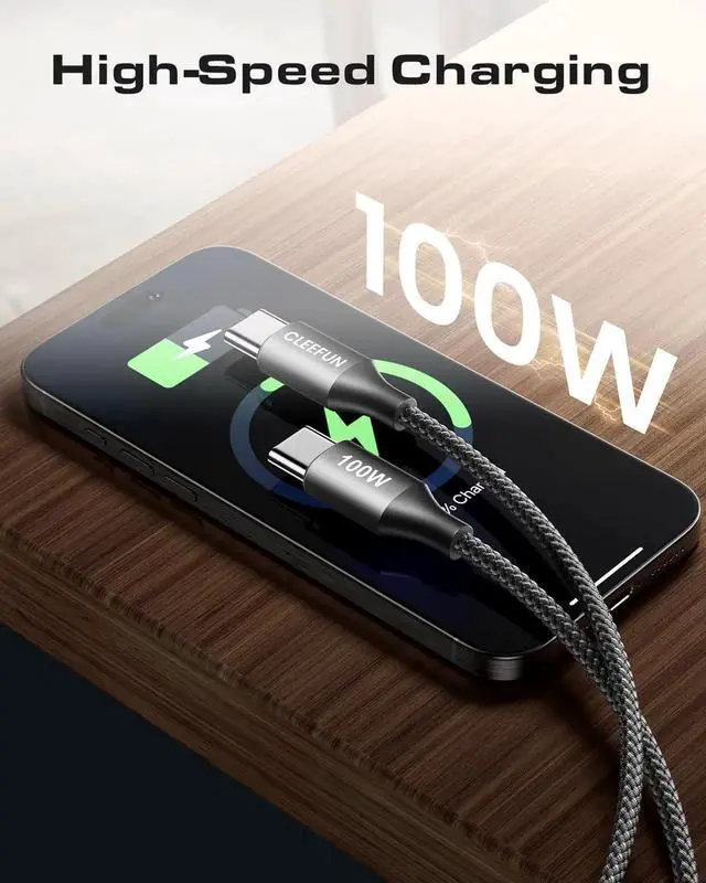 What You Get: CLEEFUN 100W USB-C to USB-C Cable (4ft 2 Pack) Nylon Braided-Black