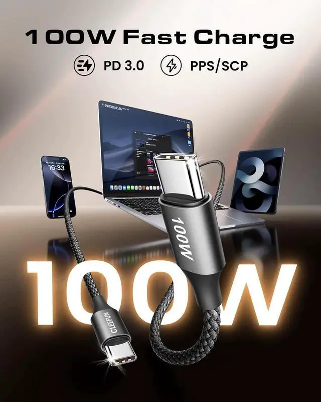 Fast Charging: CLEEFUN type c to type c cable is compatible with PD 3.0 protocol up to 100W (20V/5A) fast charging when used with compatible chargersSmart