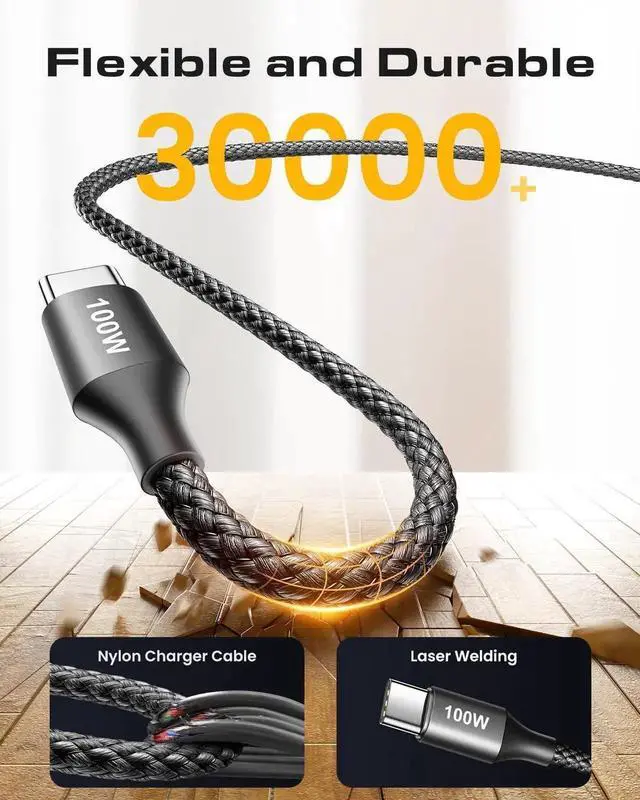 Last: CLEEFUN charger cord type c uses premium nylon outer layer and aluminum shell to prevent the cable from wearing and breaking due to long-term use with a bending life of 30000+Wide