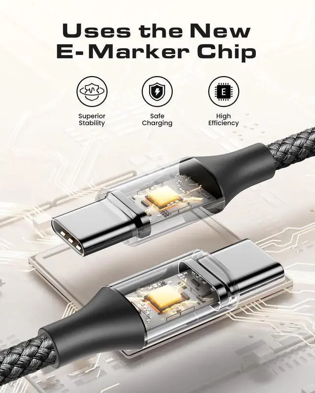Chip Protection: The usb c to c cable has a built-in E-marker smart chip allowing you to enjoy light-speed charging and ensure a more stable charging processBuild to