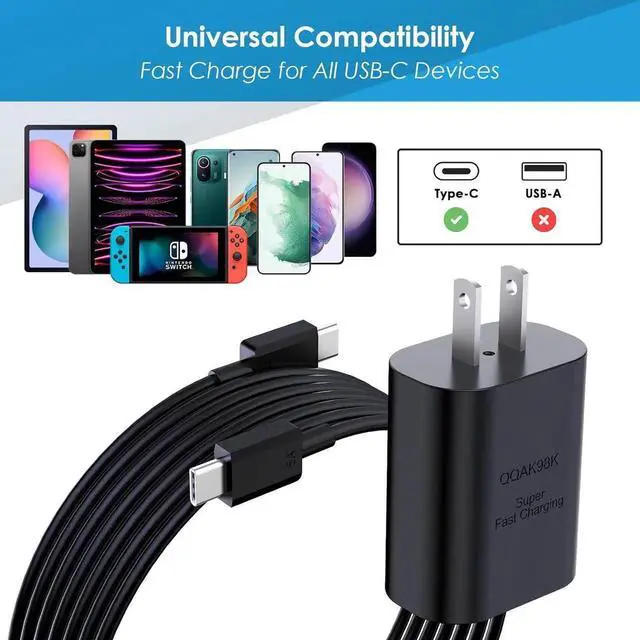 Confidence: UL certified 25W Type C charger with 1-year warranty and 8-hours fast customer service. Buy with confidence - your satisfaction is our top priority. What You Can Get2pcs PD 25W Charger block + 2pcs long 10ft type-C to type c charging cable.
