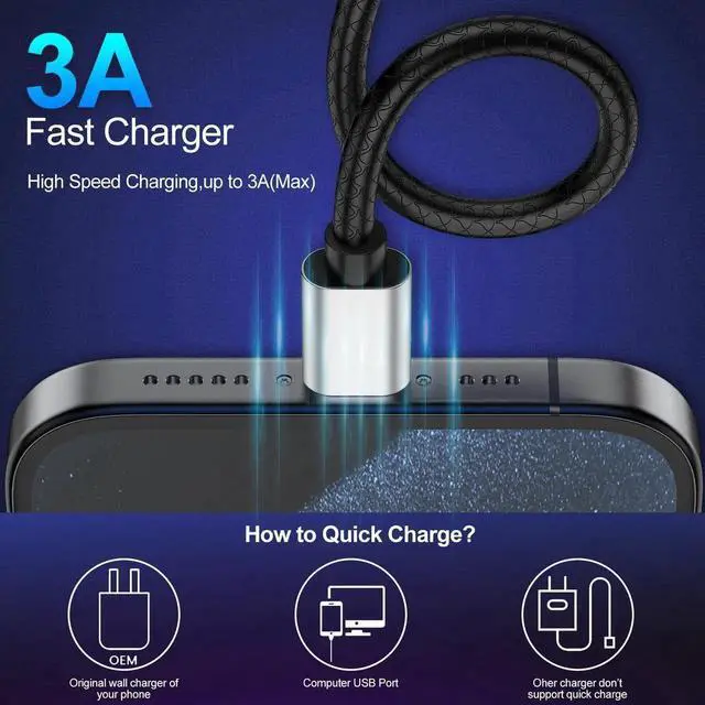 Compatible WithWork with the new USB Type-C devices Compatible with iPhone 15 Pro Galaxy S10/S10e/S9/S8 Note 10 9 8 Plus/S8+ LG G6 G5 V30 V20 LG Nexus 5X Lumia 950 Lumia 950XL Axon 7 Moto Z2 play HTC U11/10 Nokia N1 and other usb type c cable device. Upgraded Cord ProtectionWith Upgraded work has been added to the cord and USB ends to improve durability and reduce fraying. In the laboratory environment bending test can reach 12 000 times +. Certified 3Amp Fast ChargeCompared with other USB 2.0 cable that delivers 5V/ 2.4A current USB cable provides up to 5V/3A safe charging current which speed increased by 40%.