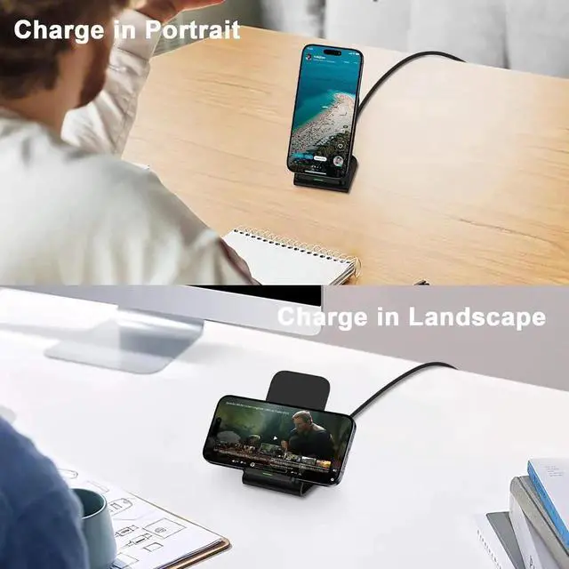 COILS WIRELESS CHARGER STAND: The galaxy s25 ultra wireless charger is engineered with two built-in coils for a wider charging area you can watch videos in landscape orientation or stand in portrait mode for FaceTime call and facial recognition all without ever cutting powerEASY