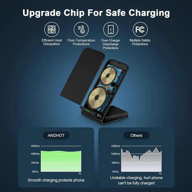 WIRELESS CHARGER STAND: The Galaxy Wireless Charger is made of fire resistant ABS material and exclusive multifunctional intelligent protect technology provides temperature control surge protection and short-circuit pre. The galaxy s25 wireless charger with double guarantee and dual safety provide you safety experience ( To get better experience we would like you to take off the phone case and use the QC 3.0 / 2.0 adapters ( Adapter not included )