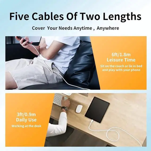 DURABLE & Flexible: The Fast charging cord ensures excellent anti-twist and abrasion resistance properties Aluminum alloy shell by micro-arc oxidation process makes the shell surface harder and more wearable. with a tested 10000+ bend lifespanWIDELY COMPATIBILITYDesigned to work perfectly with any device that uses a Type-C port. WHAT YOU GET 3.3 ft USB A to USB-C cable*3 + 6 ft USB A to USB-C cable*2 for various distances charging! meet all your using occasions like home office or cars.