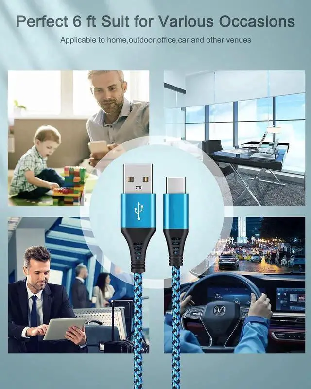 ![Alt view image 7 of 7 - [4Pack/6FT] USB Type C to USB A Cable 3A Fast Charging Long Android USBC Phone Power Charger Braided Cord for Galaxy Charger Droid Woven iPhone 16e 16 15 Pro Max Moto Android Type-C Cable](https://c1.neweggimages.com/productimage/nb640/C280S2601140TJ1ZUDA.jpg)