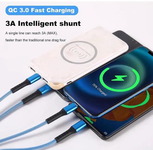 USB C Cables]: USB A to USB-C Phone Charger Cable takes charging to the next level with not just one USB QC 3.0 Type C port but four USB C ports! Experience the power to charge multiple devices simultaneously without compromising on speed or performance that making it the perfect choice for families friends or colleagues sharing charging stations.