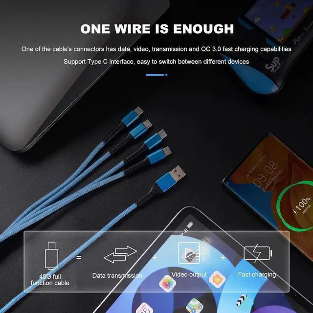 You will get: USB A to 4 in 1 USB C charger cable 1pack 4 FT Woven sky blue. [Innovative 4 in 1