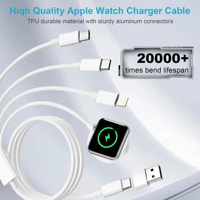 Phone Charger: The multi Phone and watch charging cord is made of high quality tpe wire enhance heat dissipation capability Our iPhone and watch charger cable is more flexible and sturdy. We have tested it to withstand 20000 bends resulting in a longer lifespan compared to ordinary cables. The charging head of the watch charger has been upgraded to be more stable so that the watch is not easy to fall off and interrupt charging.