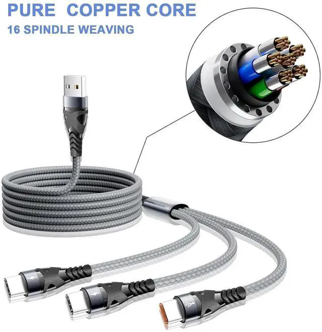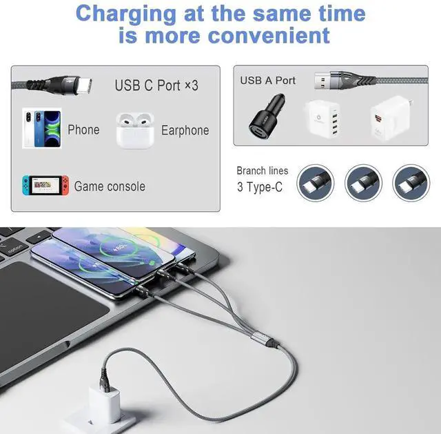 ![Alt view image 7 of 7 - Multi USB C Cable Fast Charging [4Ft/2 Pack] QC 3.0(3A) USB C Splitter Cable 3 in 1 Charger Cord with 3*Type C Adpter Ports for iPhone 15/16 Series iPad Pro Galaxy S25 S24 Switch](https://c1.neweggimages.com/productimage/nb640/C280S250919027XIT36.jpg)
