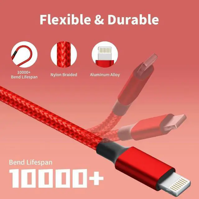 Charger Cable: The multi charger cable is unique brings you convenience and sharing feeling. 3 charging tips in 1 cable make the phone charger simple lightweight and portable. You can carry this multi cord charger cable anywhere perfect for home carplay office travel dock or sharing with friendsSafe&Stable