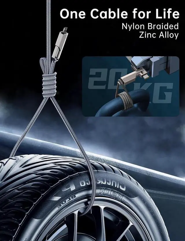 Data Transfer: 4-in-1 USB cable offers high-speed and safe charging up to 60W enabling faster charging compared to standard cables. It can charge a S24 Ultra phone to 80% in 30 minutes (actual speed depends on your device and charger). The cable supports data transfer at 40-60MB/s allowing a 1GB file transfer in 20 seconds. Compatible with iPhone tablets Air Mini Pro MacBook and more this cable saves time and enhances efficiencyUnbreakable USB C